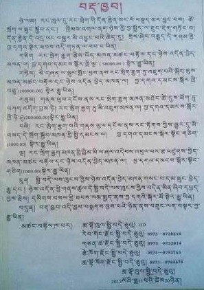 Passang Lhamo, a 62 year old Tibetan woman in the Kyegudo province in Tibet burned herself on 13 September last year. The reason for her extreme step was to protest against the Chinese government for its illegal acquisition of her ancestral land. Passang pleaded constantly with Chinese government representative to read more →