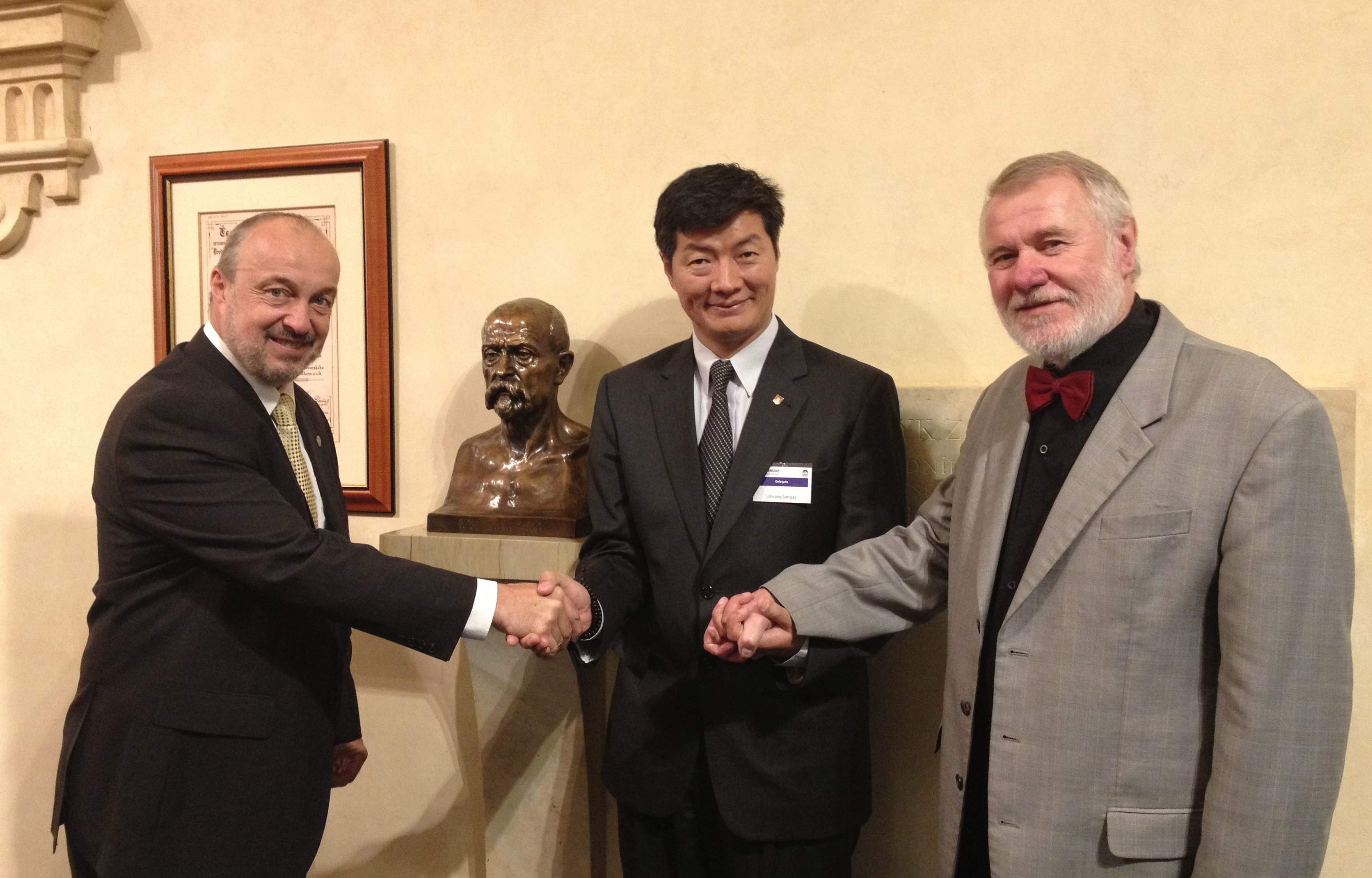 Senator Petr Bratský, the Chairman of Tibet group in the Czech Senate, Dr. Lobsang Sangay, and Senator Jaromír Štětina