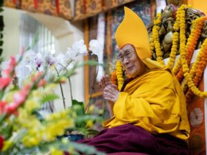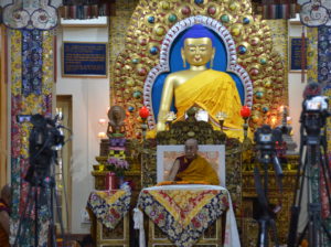 His Holiness the Dalai Lama attended a Long Life Prayer offered to him by the people of the three provinces of Tibet and Tibetan spiritual traditions (cholsum choegyud) in Tsuglakhan, the main Temple in Dharamshala. The event was attended by thousands of devotees from many countries.