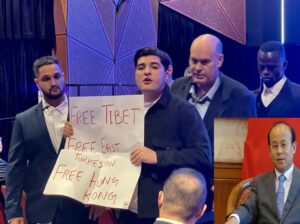 Protestors interrupted China's ambassador to Australia, Xiao Qian’s speech at the University of Technology Sydney; he was talking about improving the relationship between the two countries. The protestors criticised China’s genocide against the Uyghur Muslims in East Turkestan (Ch: Xinjiang) and their treatment of Tibetans and Hong Kongers. Drew Pavlou, a well-known anti-Chinese Communist Party activist, was one of the protestors.