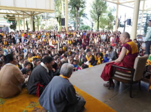 Tibetans in Bir Tibetan settlement in Mandi district of Himachal Pradesh honoured His Holiness the Dalai Lama by offering him a special memento of Ashtamangala,‘the eight auspicious symbol of Buddhism.’ The offering was to express their gratitude to His Holiness and was during an audience with its 400 members. His Holiness advised the younger generation to pay more attention to the Tibetan language which, he said, is the most appropriate language with which to learn the Nalanda tradition.