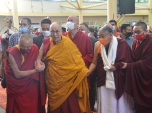 His Holiness the Dalai Lama attended Tenshug, a long life prayer, offered to him by the Sakya Tibetan Buddhist tradition in the Main Tibetan Temple in Dharamshala. His Holiness briefly addressed the gathering, thanking the Tenshug organisers and saying that to meet the aspirations of the Tibetan people and to continue Buddhas’ teachings, he will pray to live to the age of at least a hundred years.