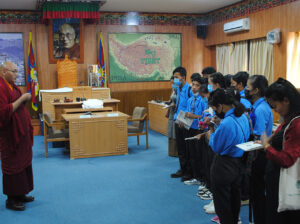A group of students from Miao Sambhota Tibetan School (STS) who are participating in an education programme run by Lha Charitable Trust, met the Speaker of the Tibetan Parliament-in-exile Sonam Tenphel. The Speaker gave the students a detailed introduction to the evolution of democracy in the exile Tibetan community under the leadership of HH the Dalai Lama. The students, aged 13-14 years, are participating in a weeklong learning programme.