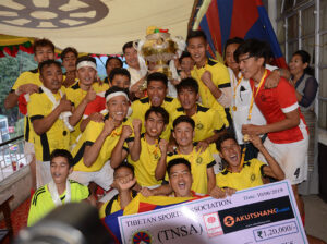 This year’s Gyalyum Chenmo Memorial Gold Cup has been won by DYSA Mundgod, the defending champions, who beat Dhondupling FC from Clement Town at Upper TCV School ground in Dharamshala, playing to a packed crowd of thousands of Tibetans and supporters and friends. DYSA Mungod won 4-2 on penalties after a closely contested game. The GCMGC is the most popular sporting event in the exile Tibetan calendar.