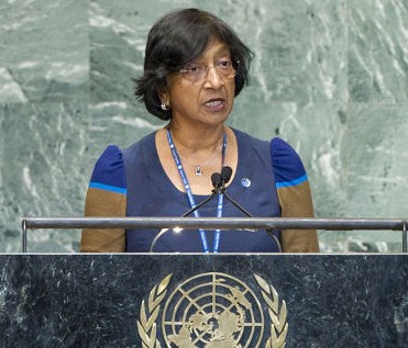 UN High Commissioner for Human Rights Navi Pillay addressing the general assembly in New York on 24 October 2012.